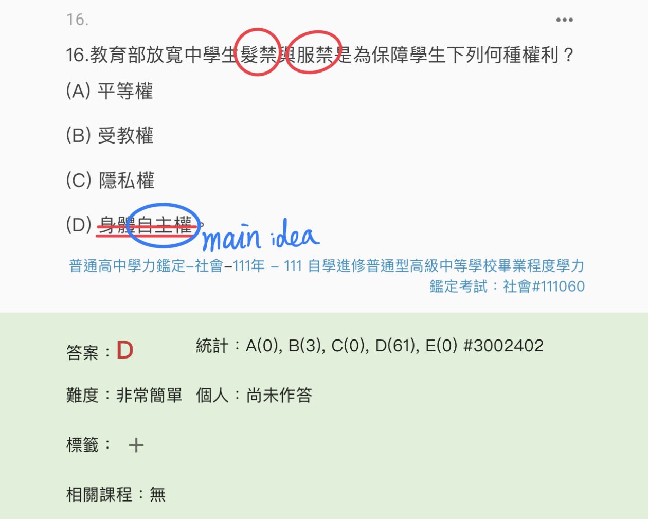 16.教育部放寬中學生髮禁與服禁是為保障學生下列何種權利?