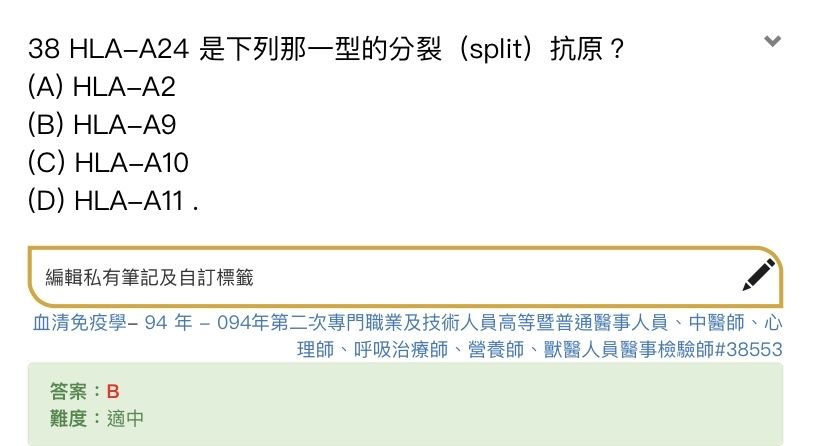 16.早期血清學測試被視為單獨的HLA抗原,後來被發現可以分裂成2個或3個鄰近的抗原,此現象稱為: