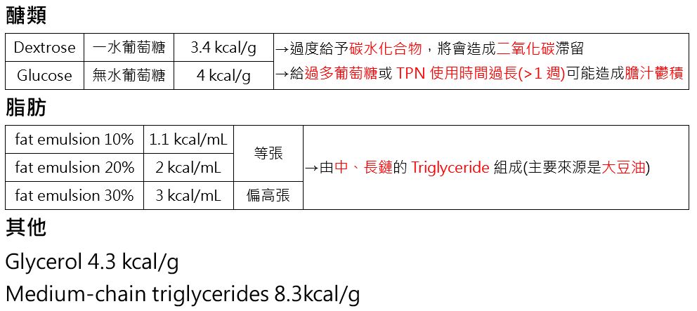 16.有關靜脈營養成分的熱量,下列何者正確?