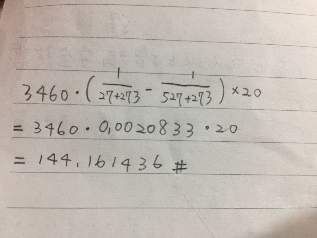 17.某棟高樓層建築物發生火災,室外溫度約為 27℃,火場室內溫度為 527℃,室外空氣密度為 1.2 kg/m3,中性帶高度為 20 公尺,則此火場因溫度差異及熱浮力所造成之室內外壓力差 ΔP 為若干(重力加速度=9.8 m/s2 )?