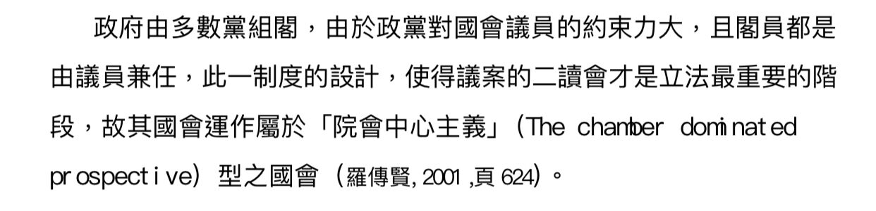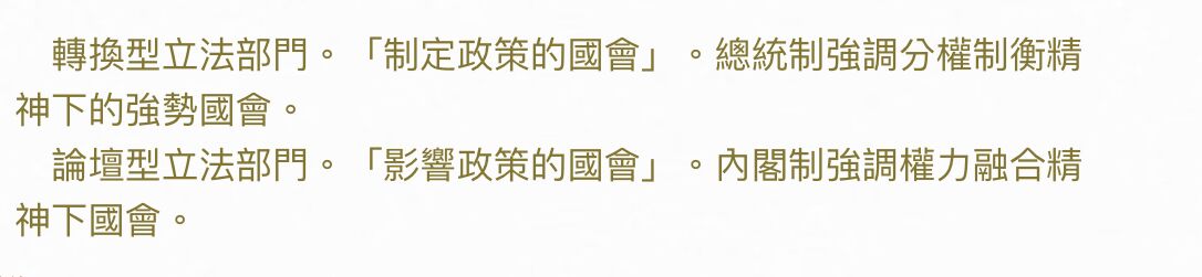 (A)英國國會為論壇型立法部門(arenalike legislature),美國國會為轉換型立法部門(transformative legislature)