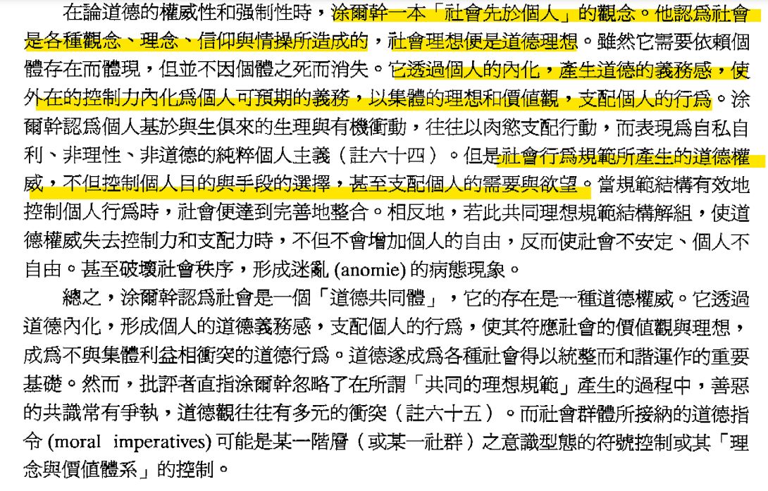 18.《高級中等學校訂定學生服裝儀容規定之原則》提及,學生的服裝儀容於重要活動應遵守學校統一規定,學校對於違反規定者,得視情節,採取適當且合乎比例原則之輔導或管教措施,並不得加以處罰。實際上,為達班級凝聚之目的,同儕會相互約束統一服儀。上述情境最符合涂爾幹(E. Durkheim)的哪一個理論觀點?