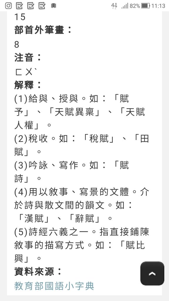 18.「顏回天賦異質」的「賦」字,詞性為: