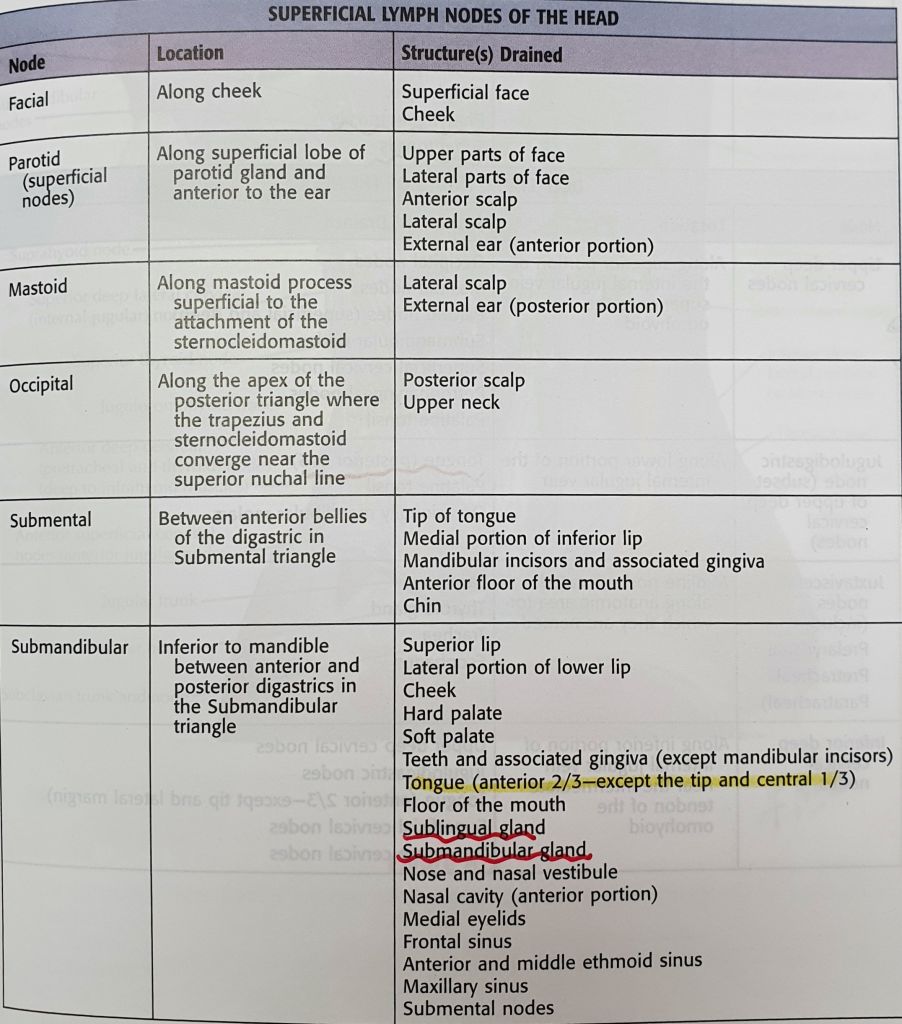 (C)來自於舌下腺的淋巴液匯流入頦下淋巴結