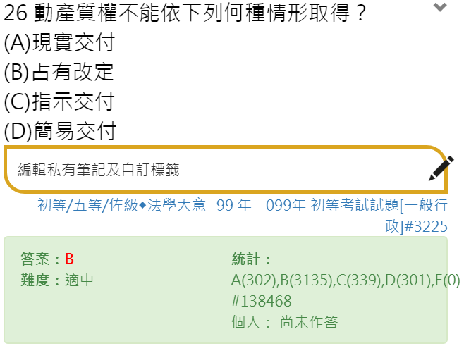 (B)占有改定