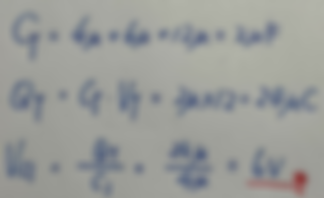 =12μF 流入 12 V 電壓源時,若將三電容器接為串聯電路,則 C
