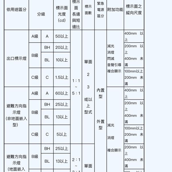 19 BH 級避難方向指示燈(非地面嵌入型)之標示面光度應達多少以上?