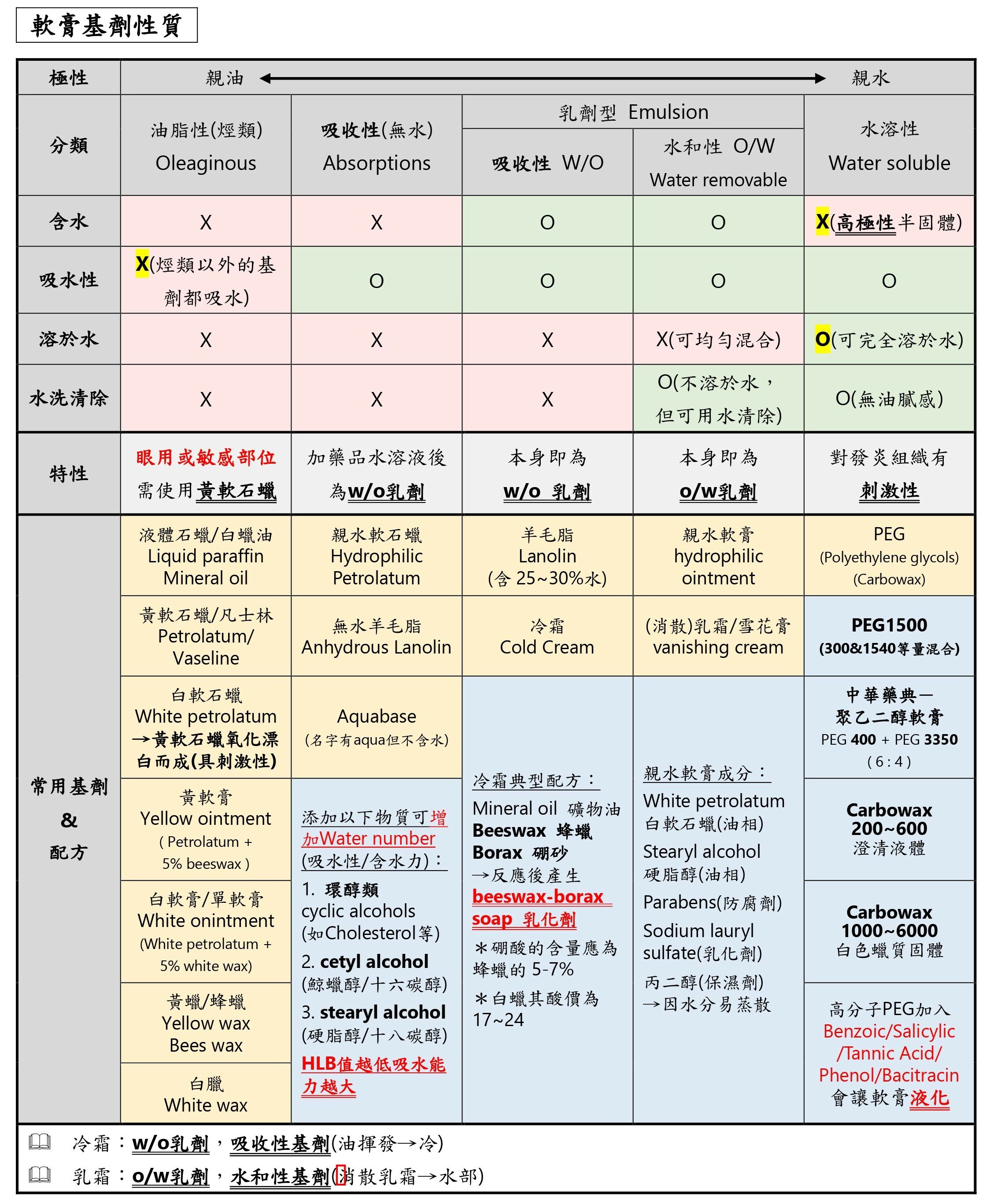 (A) 羊毛脂-W/O型乳劑,亦屬於吸收性基劑