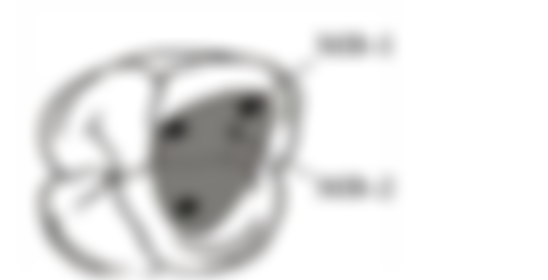 19.下列為治療同顆牙齒拍攝不同角度的X光片。相對於A圖,B圖中第一大臼齒拍攝的角度以及箭頭所指的根管名稱為何?