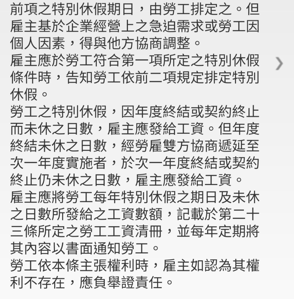 (C)勞工之特別休假,因年度終結或契約終止而未休之日數,雇主應發給工資
