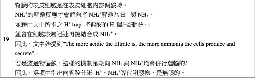19. 請選出描述近曲小管 (proximal tubule) 功能的最佳組合: