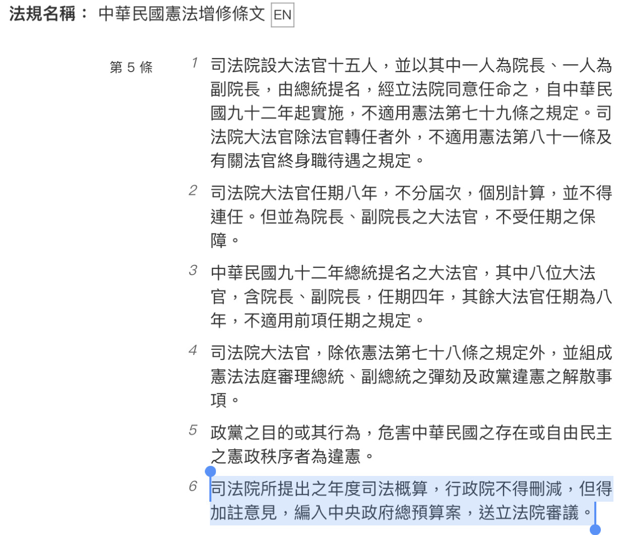 憲增第5條第六項