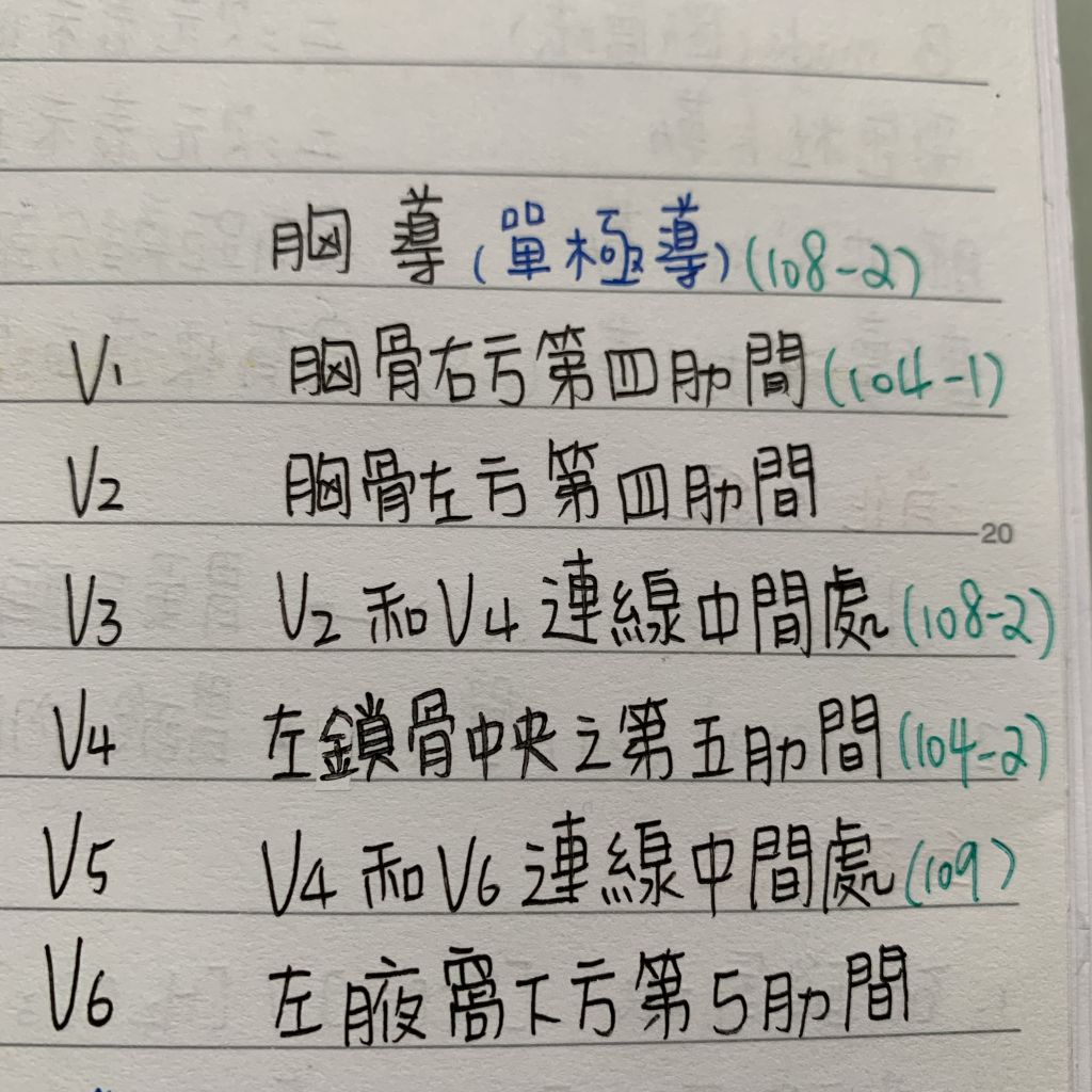 2.心電圖胸導V5,是將金屬吸球電極置於下列何交接處?