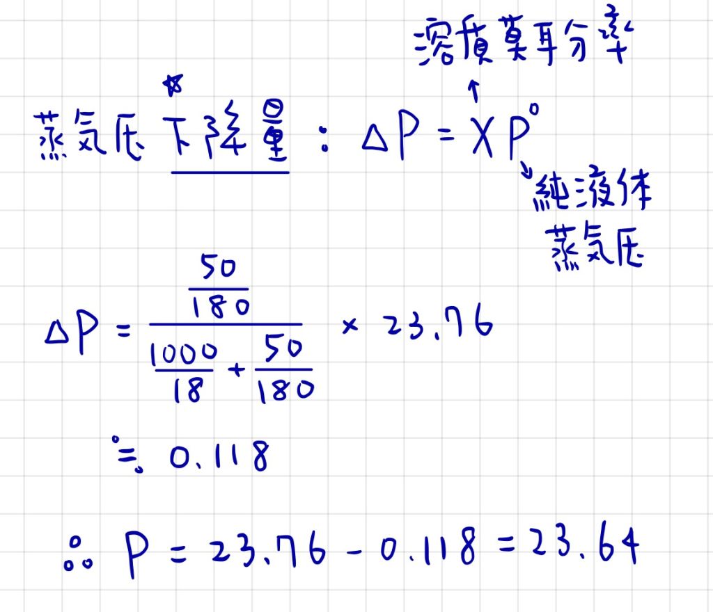 2.水的蒸氣壓為23.76 mmHg時,相同溫度下,1,000 mL水加入50 g葡萄糖,其蒸氣壓為若干mmHg?