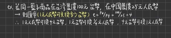 2.美國麥香堡賣價為 1 美元,但在日本麥香堡賣價是 100 日圓,則依購買力平價理論,匯率為: