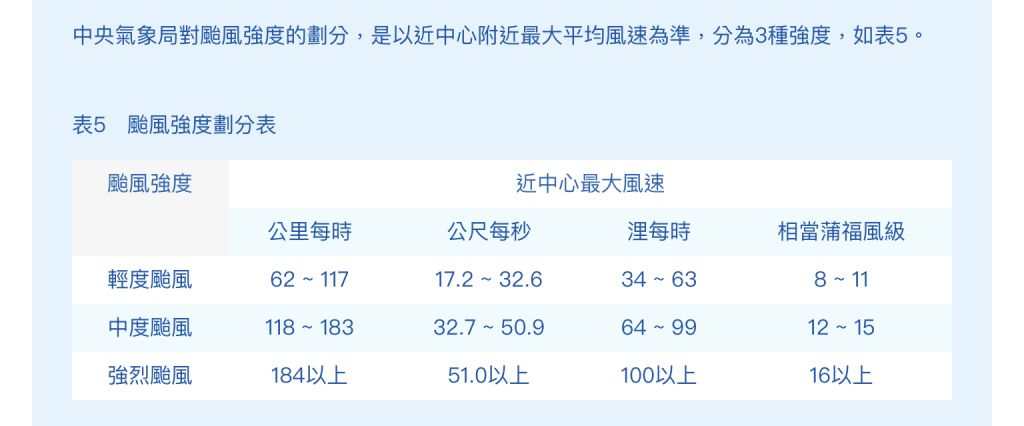 2. 依照我國中央氣象局(改為中央氣象署)的說明,中度颱風中心附近最大風速為每秒多少公尺