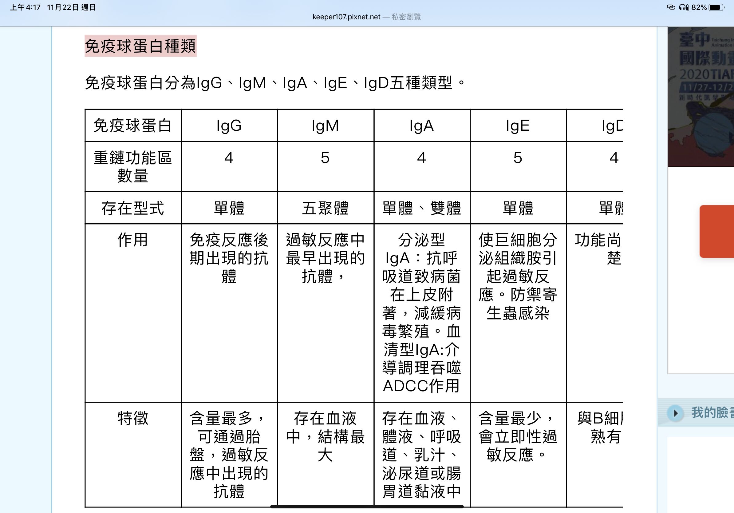 2. 抗體又稻免疫球蛋白(Immunoglobulin, Ig),不同種類的抗體有作用。能刺激mast cell釋放組織胺的主要免疫球蛋白類型,下列何者最正確?