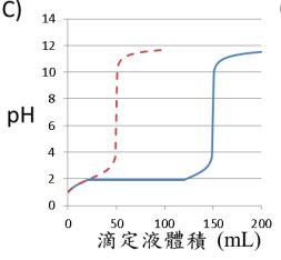 (1)下列何者最有可能是實驗的數據(實線)與理論值(虛線)的比較?