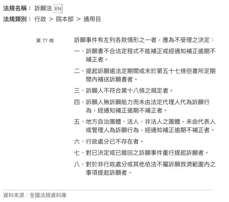20 下列何者非屬訴願事件不受理之事由?