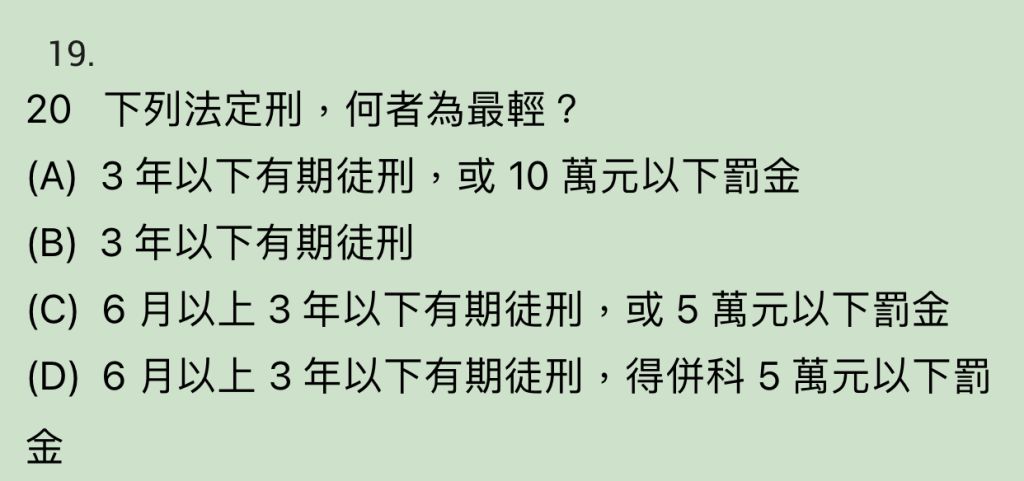 →四選項最高度皆為3年,CD之最低度為6月以上較重,優先淘汰剩AB