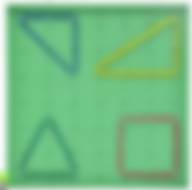 (C) 認識正方形、長方形和三角形:釘板是小學階段教學幾何圖形(如正方形、長方形、三角形)的常用且有效的工具。學童可以利用橡皮筋在釘板上輕鬆圍出這些基本圖形,觀察它們的邊、角特徵,並透過操作來加深對圖形的認識。