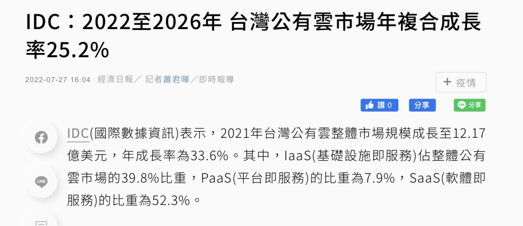 (D)公用雲服務中,IaaS 目前佔比最高