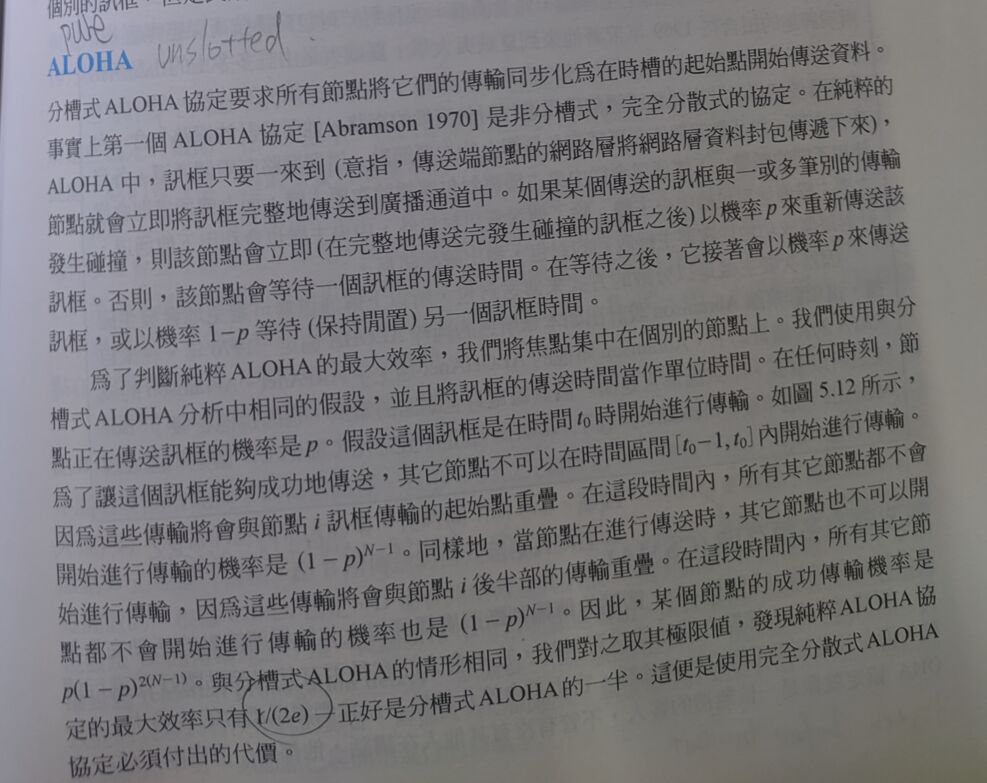 20.請問 ALOHA 傅輸效率為分槽式ALOHA的幾倍?