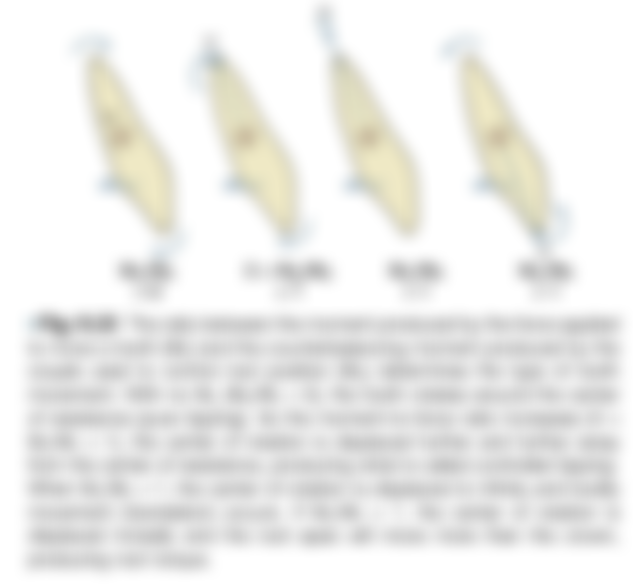 21.下圖是有關牙齒基本移動原理,實心點代表牙齒之抗力中心(center of resistance),空心點代表牙齒移動時之旋轉中心 (center of rotation),直線箭頭代表施力方向,曲線箭頭代表力矩(moment)之大小。那一圖例代表牙齒單純水平位移 (translation)?