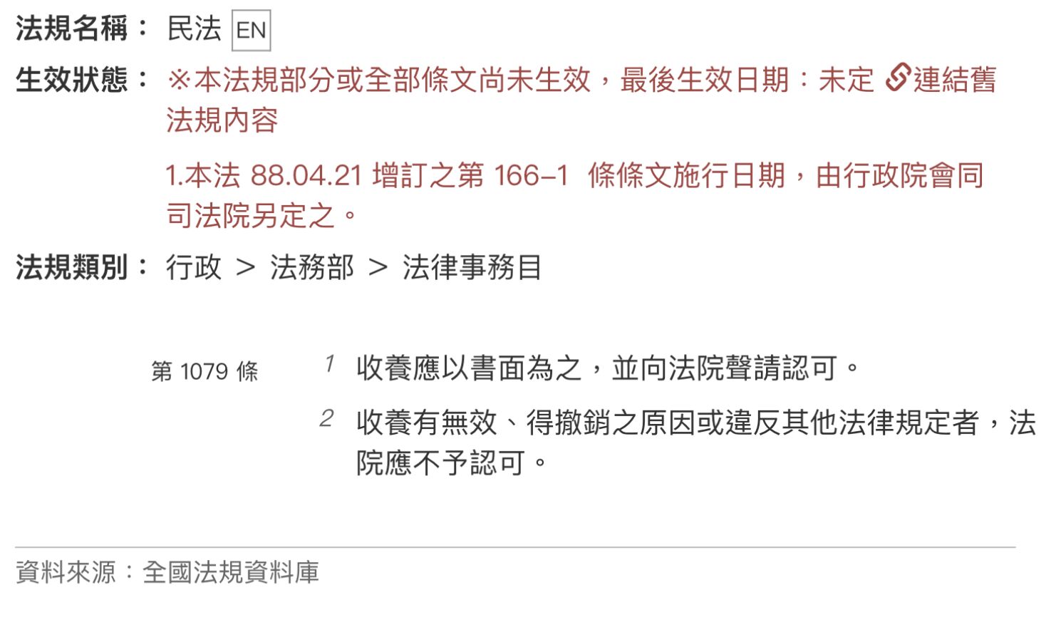 (B)民法第1079條。