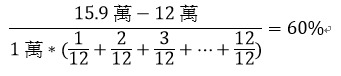 21.老王以定期定額方式投資基金,每月初扣款 1 萬元,持續 12 個月後,月底贖回時金額為 15.9 萬元,考慮時間