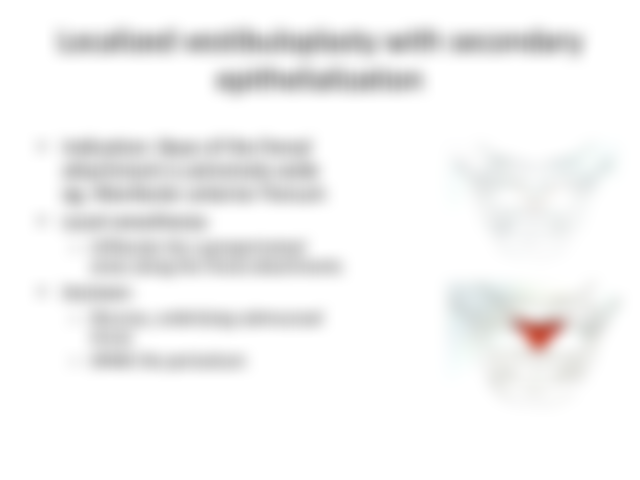 (D)唇繫帶切開術併用局部前庭成形術,其傷口以次級上皮癒合方式