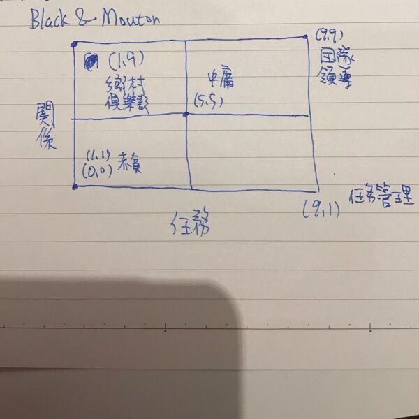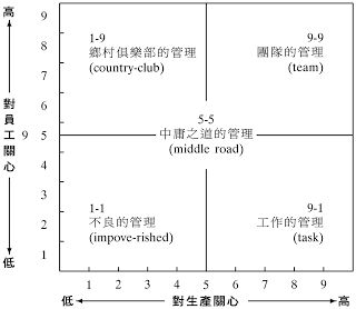 21. 根據布萊克(Blake)和莫頓(Mouton)所提出之管理方格(Management Grid)理論,其中座標(1,9)型為下列何者?