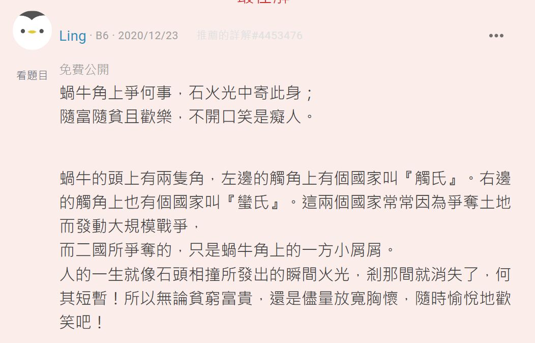 (A)借問漢宮誰得似?「可憐」飛燕倚新妝。/「可憐」夜半虛前席,不問蒼生問鬼神。