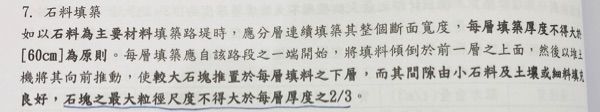 22 以石料為主要材料填築路堤時,應分層連續填築其整個斷面寬度,石塊之最大粒徑尺度不得大於每層厚度之多少?