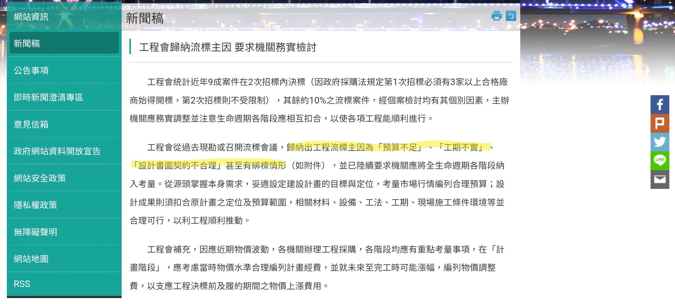 22 工程會透過專案檢討會議發現流標皆有其個案因素,下列何者為非?