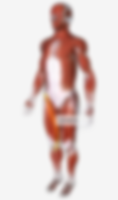 大腿肌群分為前肌群、後肌群及內側肌群;前肌群有縫匠肌(Satorius)和股四頭肌(Quadriceps),縫匠肌起點於髂前上棘止點於脛骨上端內側面,是人體最長的肌肉。股四頭肌為包括四大肌肉骨直肌、股外肌、股內肌和股中肌因股四頭的生理橫斷面大,是最有力的肌肉,主要功能為伸展小腿屈曲髕關節並維持人體站立姿勢。