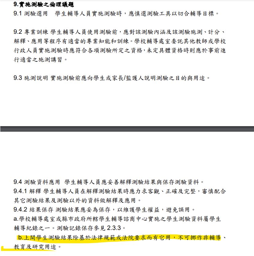 (D)學生測驗結果絕對不可挪作非輔導、非教育的研究用途