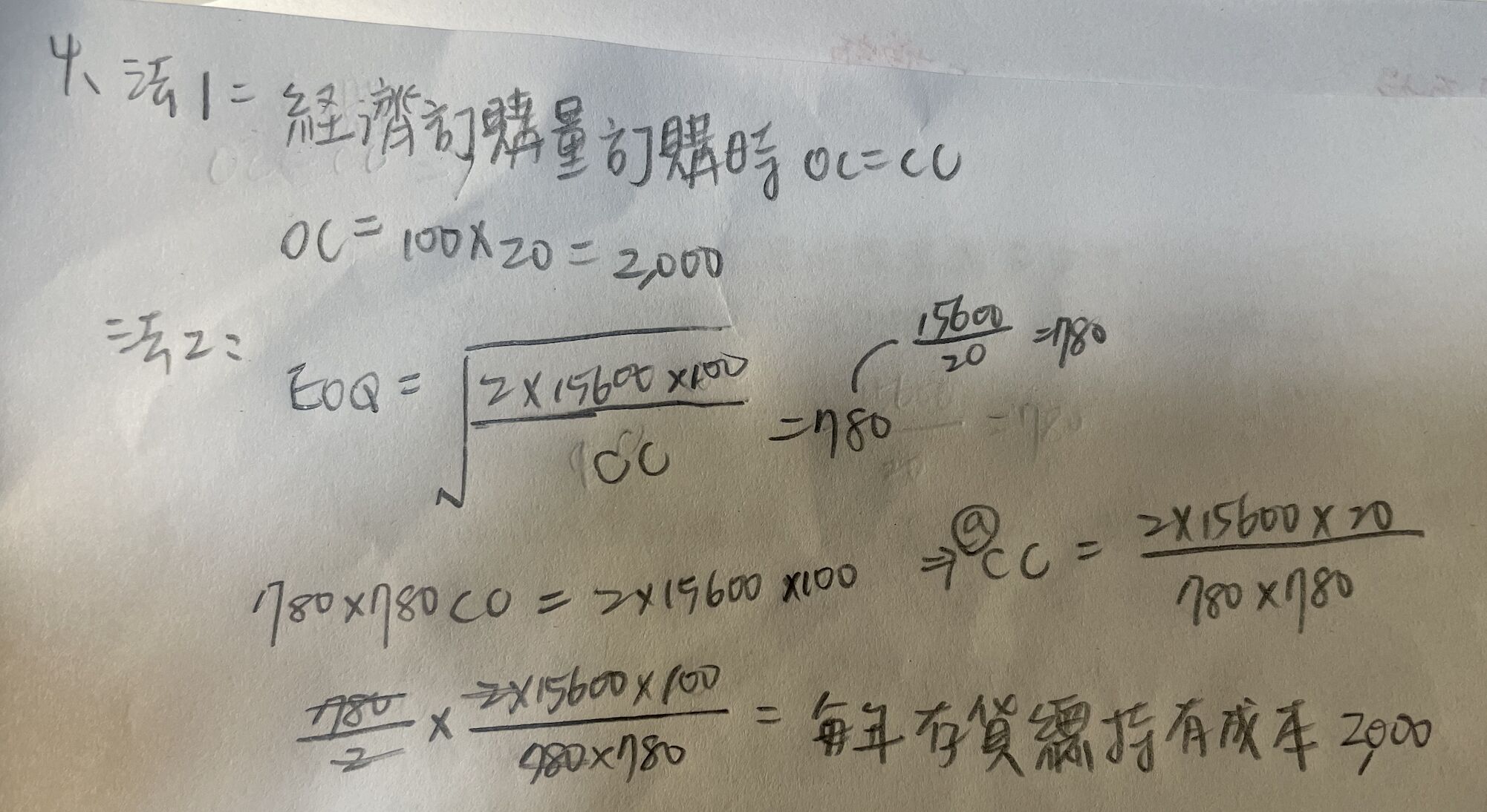 15600/EOQ=20次,EOQ=78...