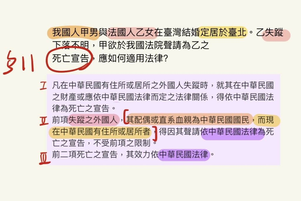 (A)死亡宣告之要件依法國法,死亡宣告之效力依我國法