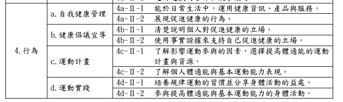 23.《十二年國民基本教育課程綱要國民中小學暨普通型高級中等學校─健康與體育領域》中,「了解個人體適能與基本