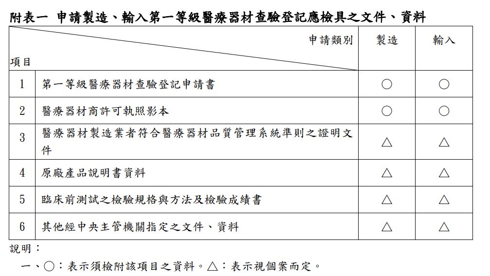 另外,申請第一等級與二、三等級醫材查驗登記應檢具之文件、資料不太一樣