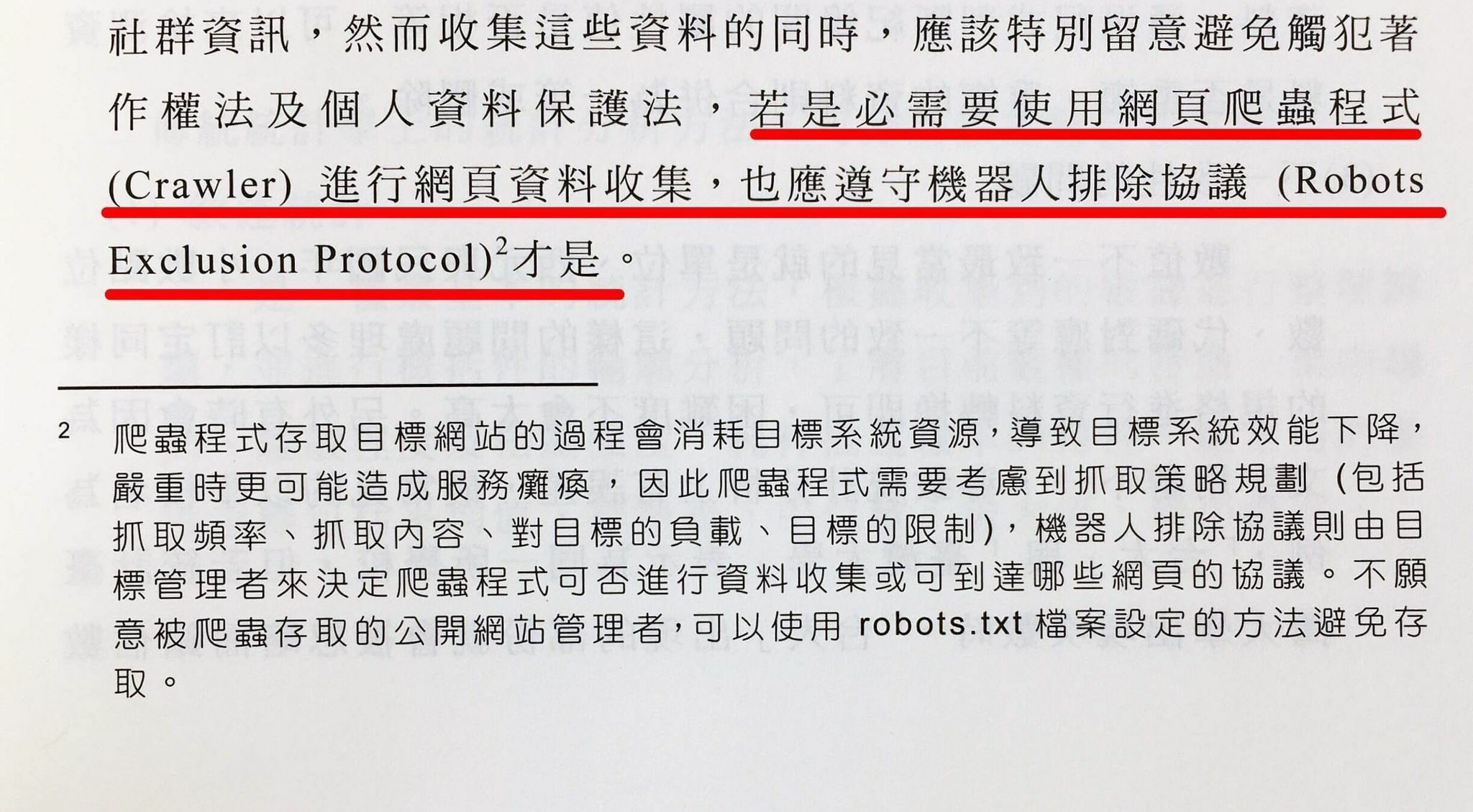 法及個人資料保護法,若是必需要使用網頁爬蟲程式進行網頁資料收集,也應該遵循下列哪一個協定或協議?
