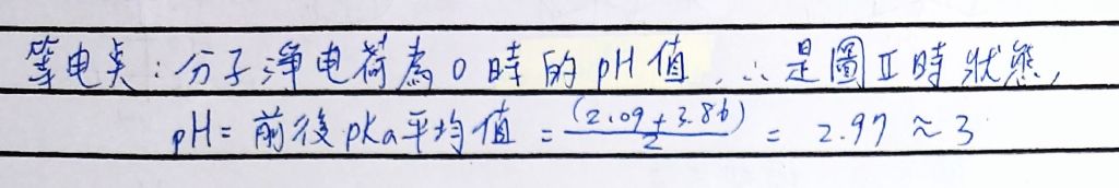 如果有兩個COOH及一個NH3:(PKa1+Pka2)/2