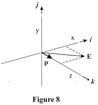 (Coul). The electric dipole is placed in a uniform electric field E=3.5×105i+4.2×105k (N/Coul) as shown in Figure 8. Find the magnitudes of the electric dipole moment of this molecular and the torque |т| exerted on the electric dipole.
