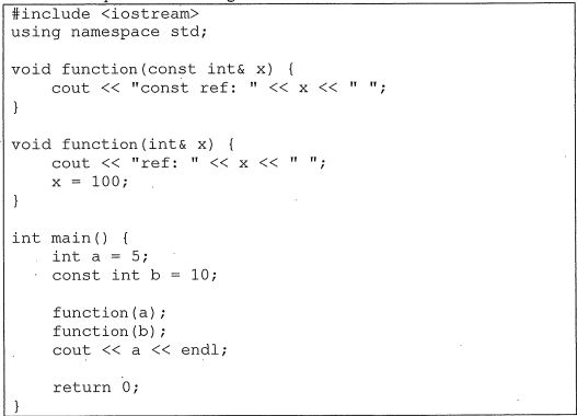(A) const ref: 5 const ref: 105