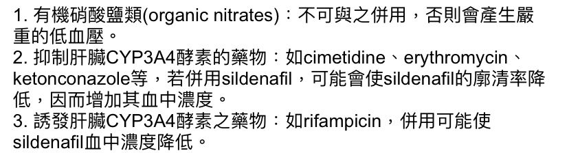 sildenafil ),下列是他平常的用藥,你(妳)會特別提醒他哪一樣藥物最不宜同時服用?