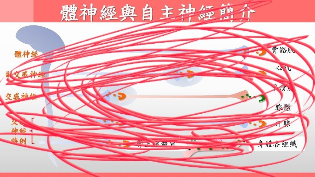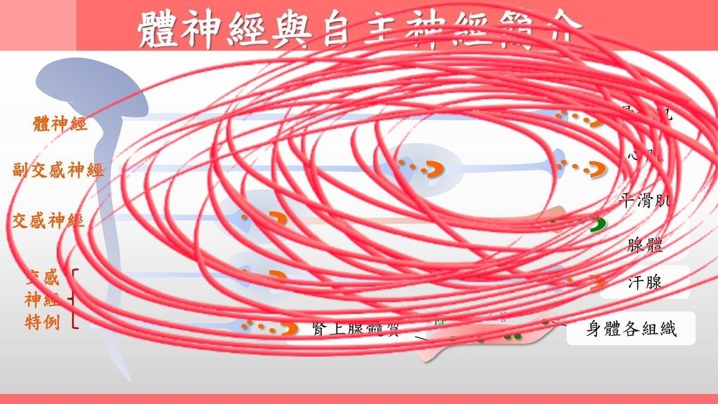 (D)下圖圈起來的地方為交感神經鏈,較靠近脊隨,因此副交感神經系統之節前神經纖維比交感的長
