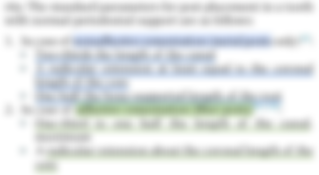 24.牙齒打金屬釘柱(metal post)時,釘柱長度通常依據下列何項參考值?