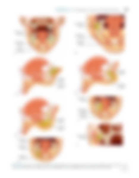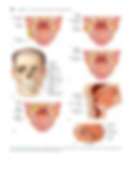 24.筋膜空間感染依據發生位置分為下顎骨以下、面頰與側臉部、咽喉與頸部、中臉部等四大區域,其中下顎骨以下的解剖感染位