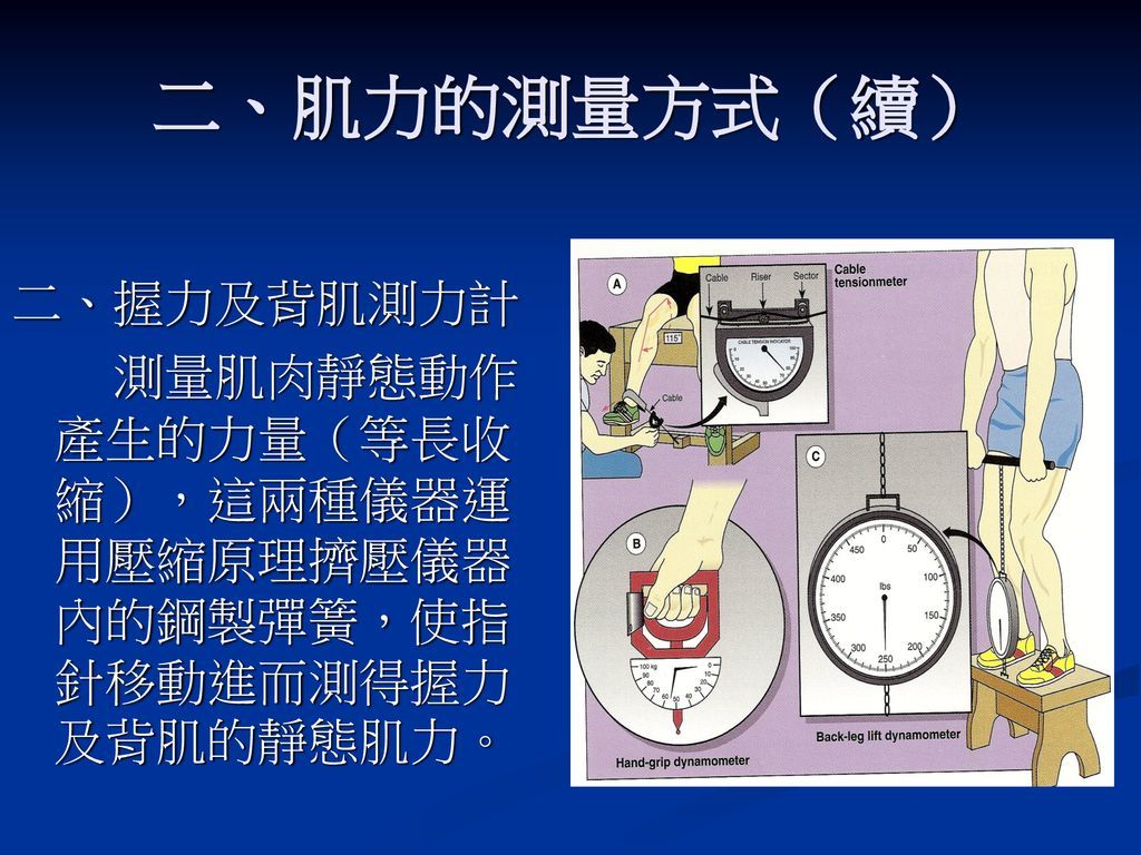 24. 有關肌力的評量,習慣上以握力計、背肌力計檢測,此等評量屬於?